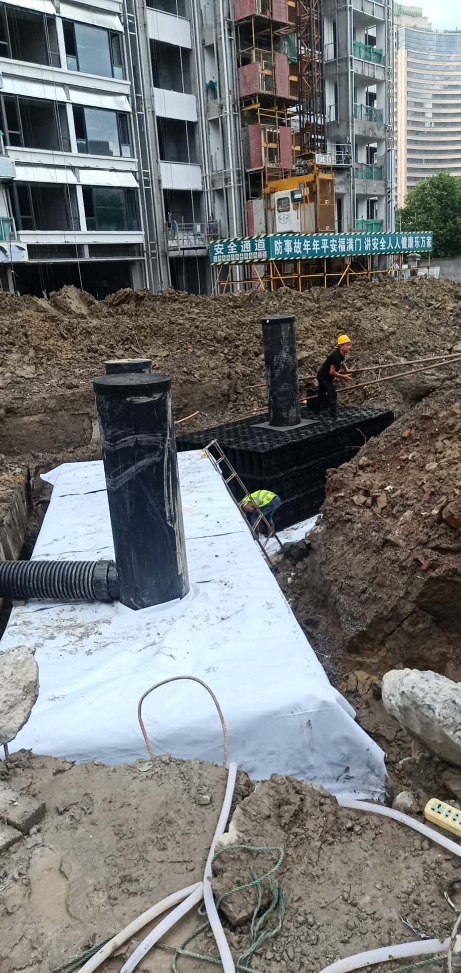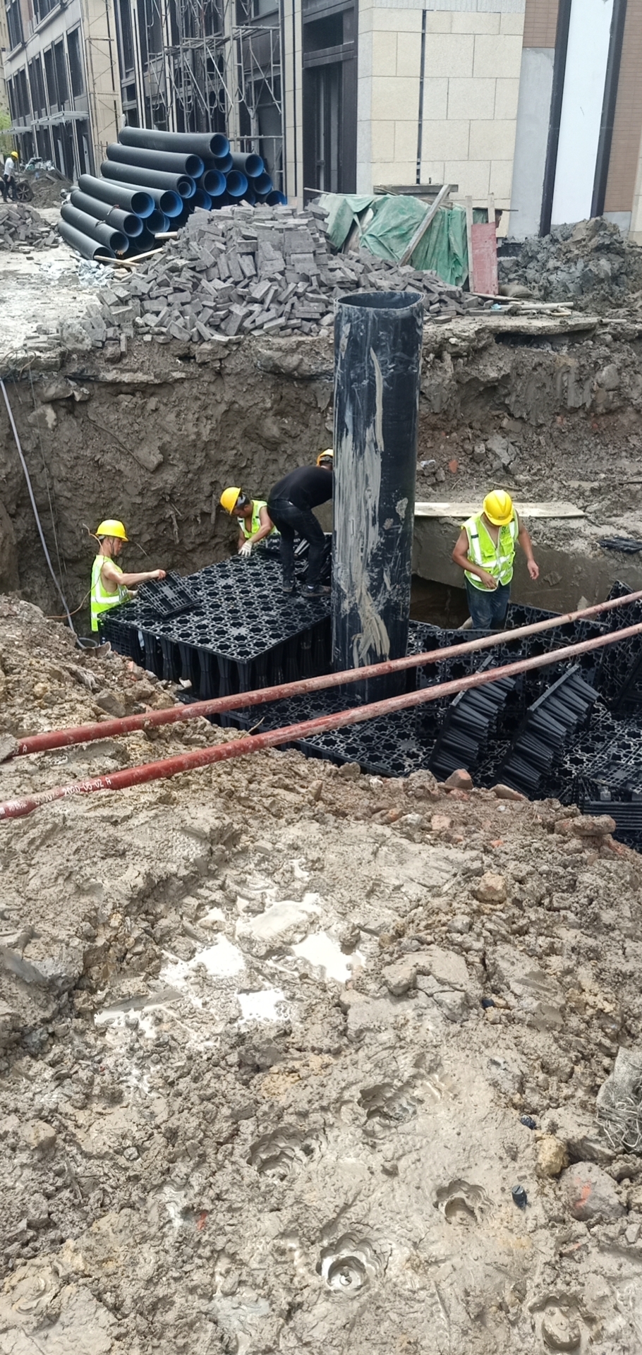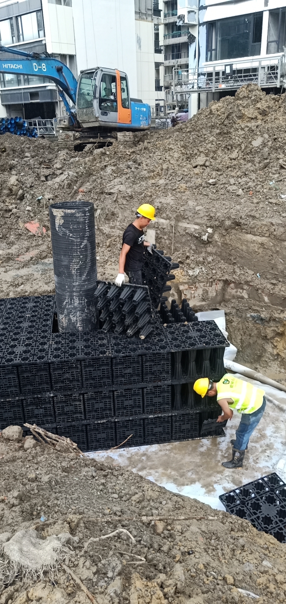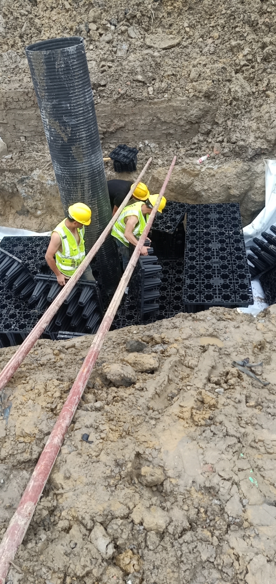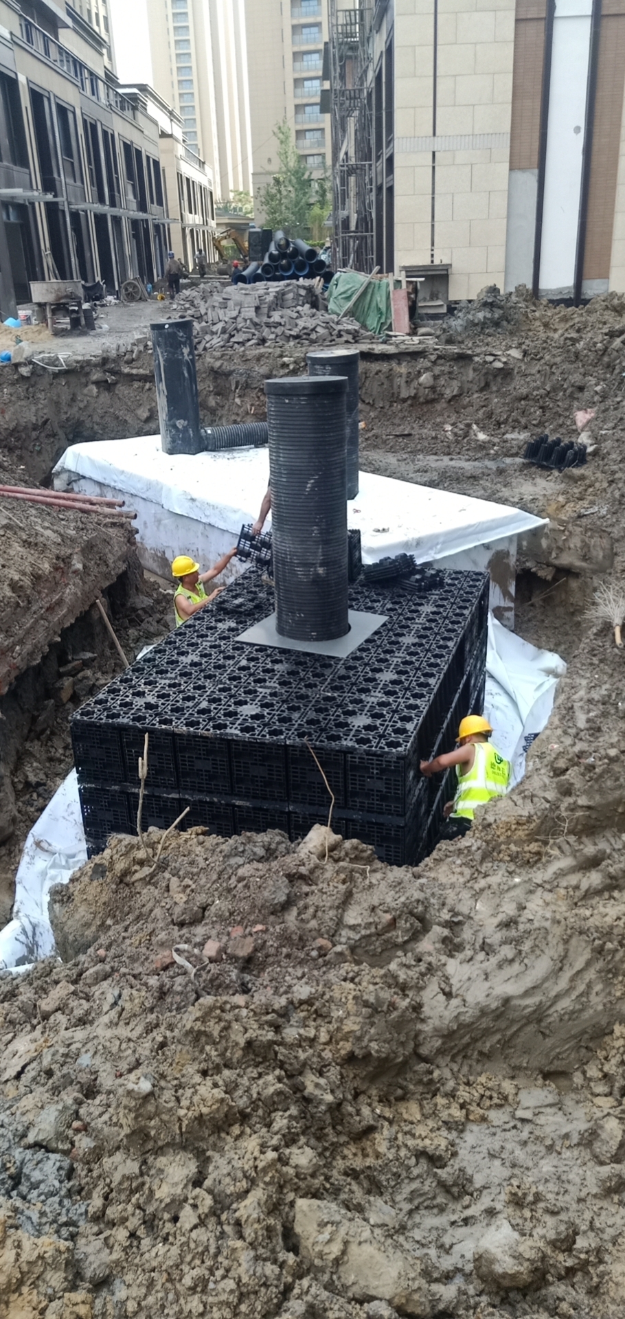 該項(xiàng)目雨水回收系統(tǒng)采用地埋PP模塊組合水池的方式收集雨水,前期經(jīng)過(guò)截污掛籃、棄流過(guò)濾,后期通過(guò)地埋一體機(jī)過(guò)濾,消毒,最終使水質(zhì)達(dá)到規(guī)范標(biāo)準(zhǔn),用于廠區(qū)綠地的澆灑,景觀補(bǔ)水,道路沖洗。